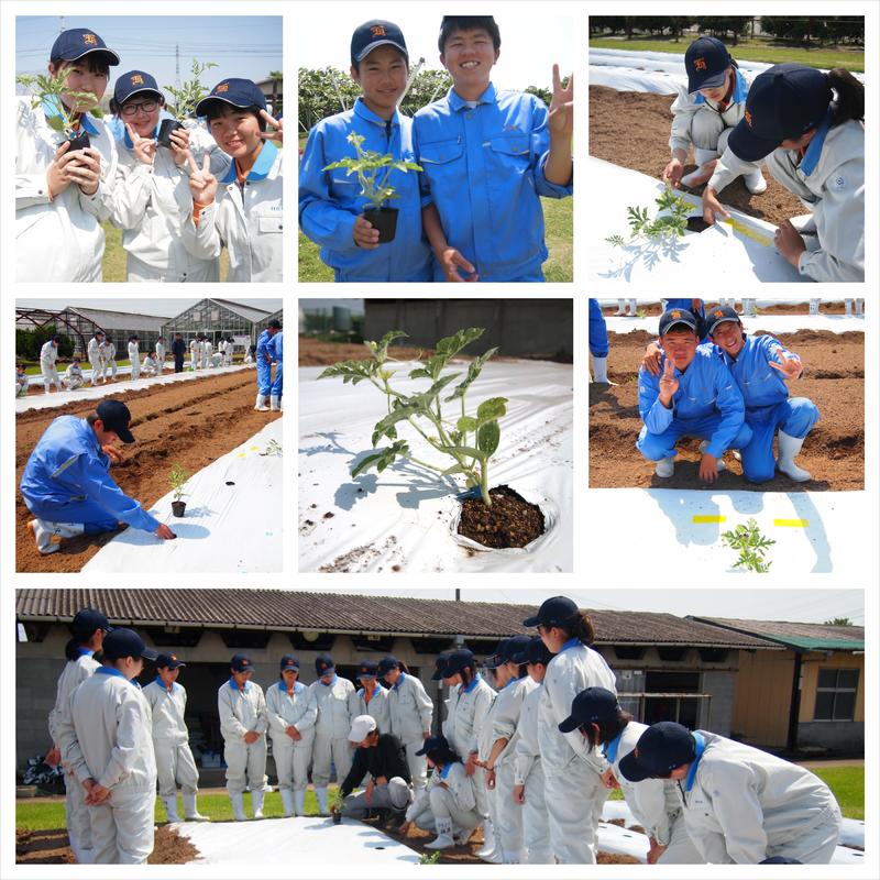 1年園芸・果樹科「農業と環境」の授業でスイカの定植をしました。