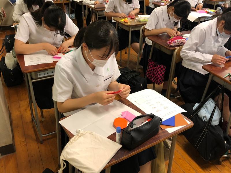 生活科3年生が、家庭科保育技術検定造形表現4級の受験を終えました。この検定は30分以内に1つの規定課題、5つの自由課題の計6つの伝承折り紙を折るという実技試験です。「子どもと発達と保育」という家庭科専門科目の中で取り組みました。練習の成果が出て、6つ全部きれいに折れた生徒が多く、合格者が多いと思われます。