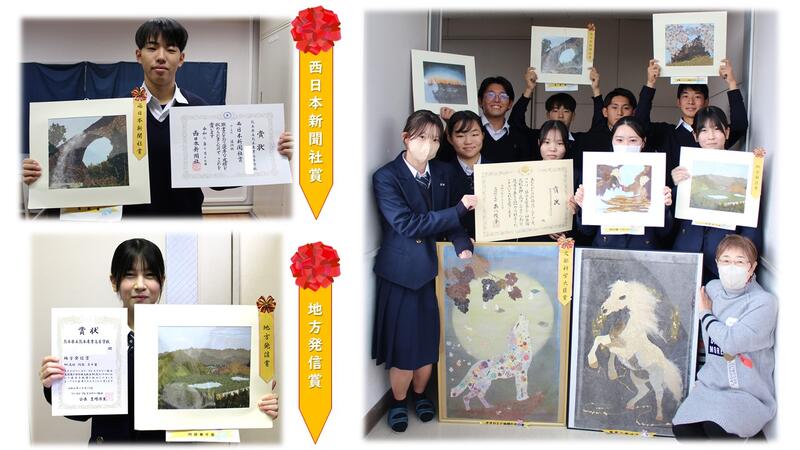 農業経済科3年生が課題研究で、廃棄される花を活用したいと押し花を始め、全国高校生押し花コンテストに挑戦しました。なんと、「文部科学大臣賞」「西日本新聞社賞」「地方発信賞」を受賞しました
