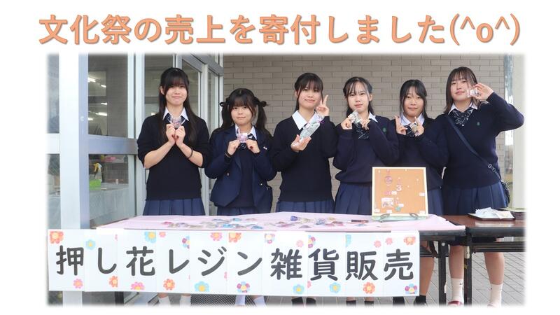 文化祭にて押し花レジン雑貨を販売し、その売上金を昨年に続き、動物愛護団体ドッグレスキュー熊本様へ寄付させていただきましたご購入いただいた皆さまのおかげで、犬や猫のために少しでもお役に立て嬉しく思います