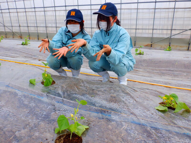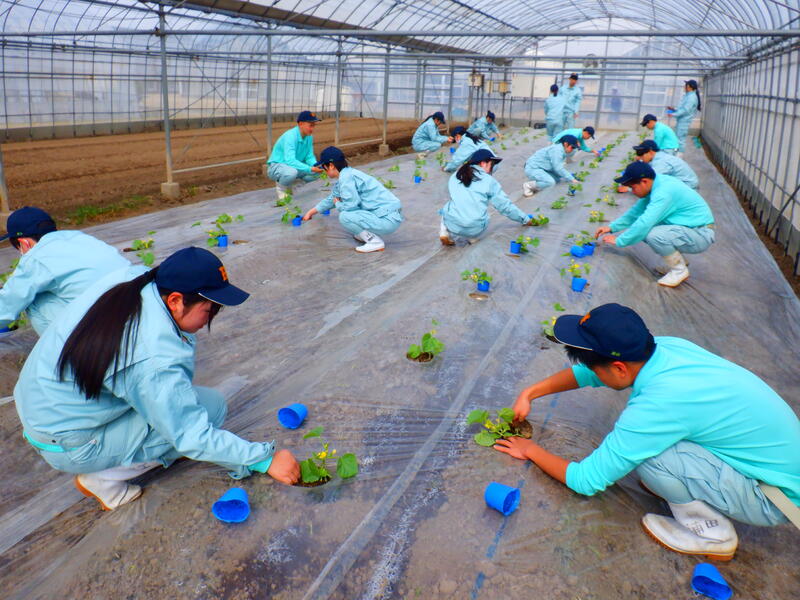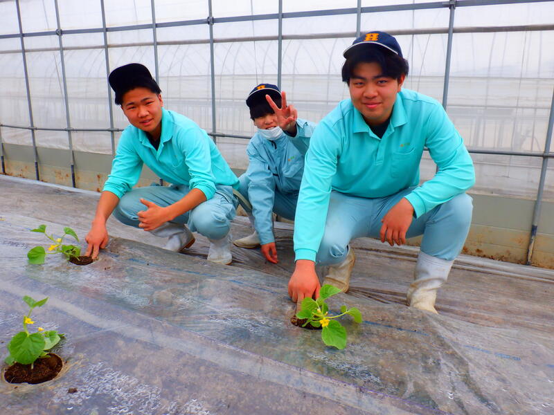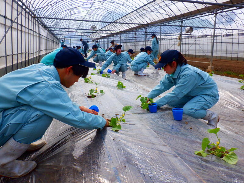 園芸・果樹科2年生が肥後グリーン(メロン)の定植を行いました。