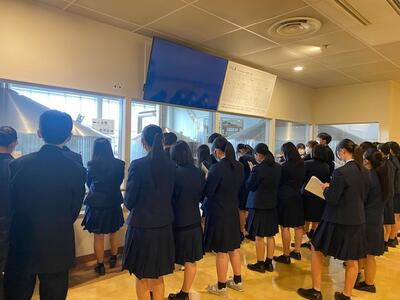 サントリー九州工場さんでは、ザ・プレミアムモルツと天然水について学びました。ビールの原料から製造工程まで詳しく教えて頂き、とても勉強になりました。サントリーさんは4か所の工場で天然水を取り扱っており、地域ごとに天然水の硬度が違うことなど、今まで知らなかったことを知ることができました。さらに環境保全活動にも取り組まれており、SDGsに関連する具体的な活動例を生徒たちも実感できたようです。
