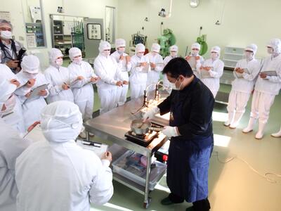 講師としてお招きした清田祥吾様は、平成18年度の本校食品工業科の卒業生です飴細工に造詣が深く、九州を拠点としてキャリアを重ねる中で各種コンテストにも積極的に出場され、数多くのパティシエと競い合いながら技術を高め続けておられます