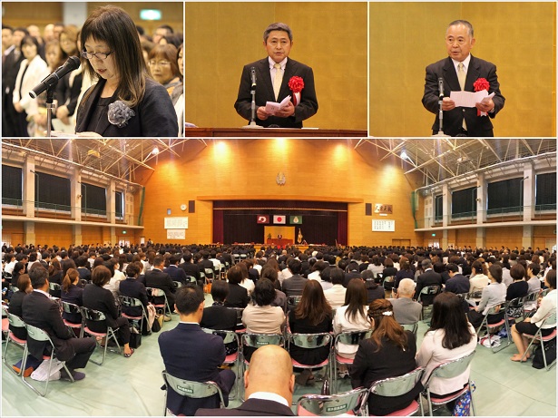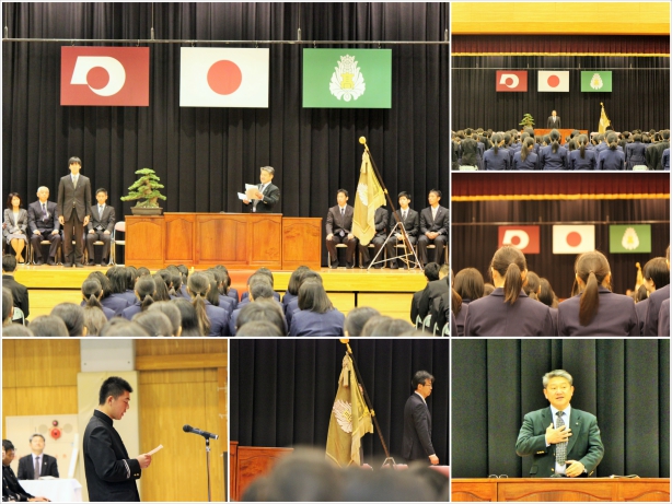 新任式では中村洋介副校長が代表挨拶を行い、東田君(生徒会長)が生徒代表歓迎の言葉を述べました。