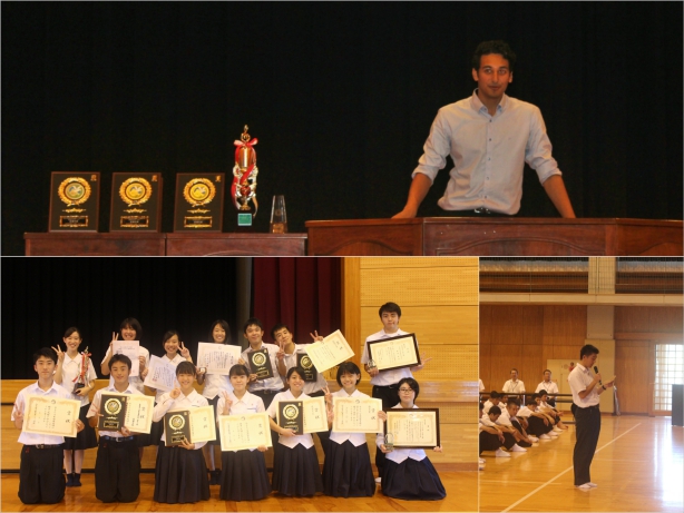 2学期の新任式・表彰式・始業式が行われました。新任式ではヴィラルカーン先生が流暢な日本語で挨拶、生徒会長の東田君が英語で歓迎の言葉を述べました。これからよろしくお願いします。