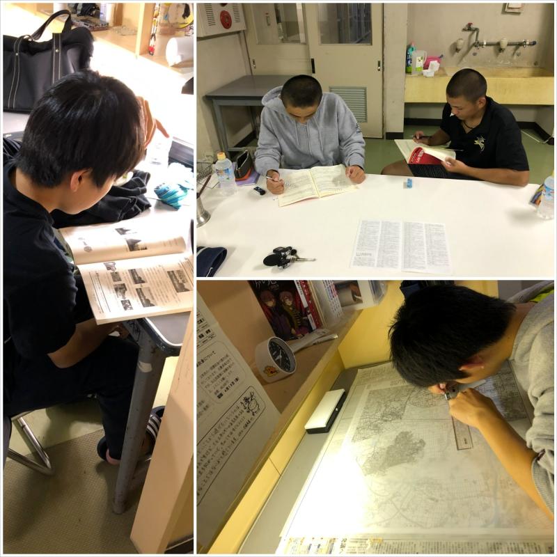 昨日の寮内は、資格取得に向けて必死に勉強している寮生達の姿がありました!写真右上の畜産科の2人は危険物取扱責任者の資格取得を目指して過去の試験問題に取り組んでいました!また、他の部屋では農業土木科の生徒が製図の作業に取り組んでいました。地図の細部まで正確に書き写している姿に、見ているこちらが感心させられました!ガンバレ!寮生達!