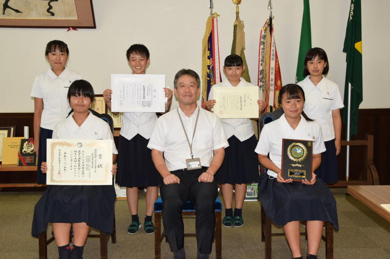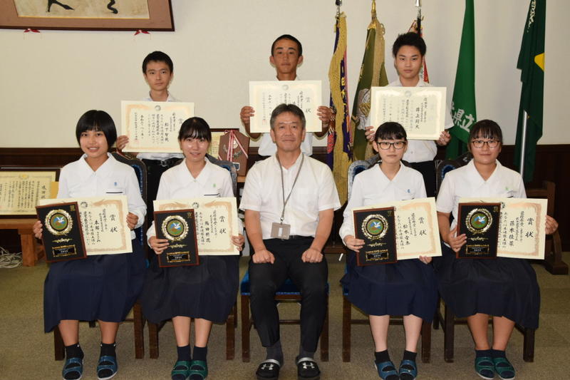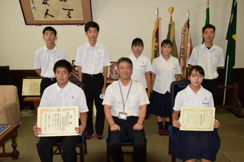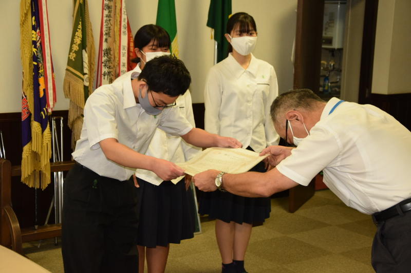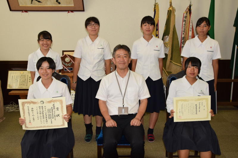 熊本県学校農業クラブ連盟年次大会(意見発表及びプロジェクト発表)と農業鑑定競技(県大会)の表彰を校長室にて行いました。