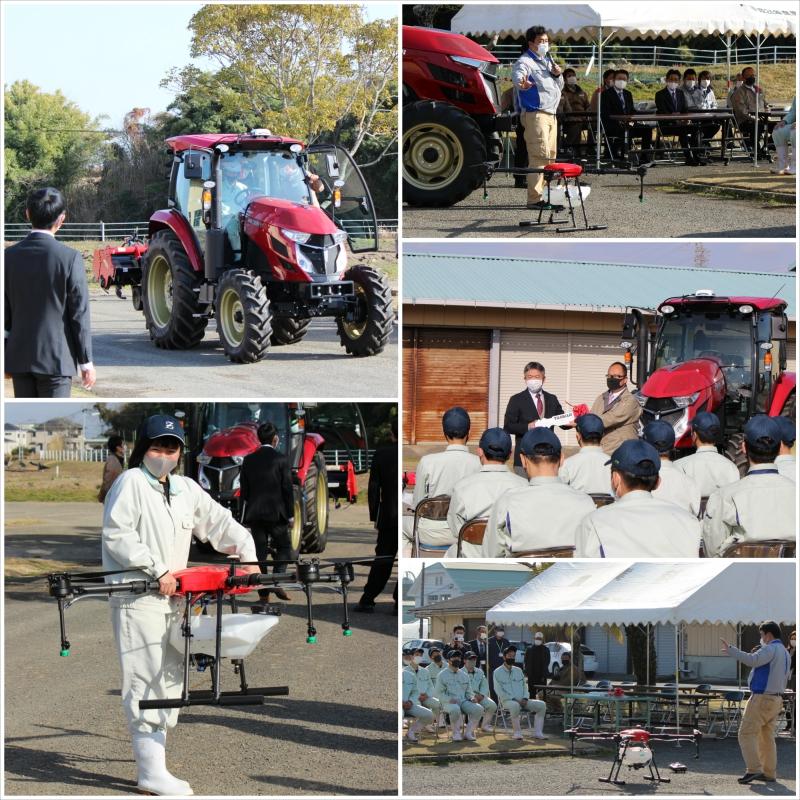 今回の先端農業機械の導入は、農業経営の大規模化やスマート農業の推進など、次世代の農業を担う高校生や若手農業経営者がより高度な技術や知識に触れる機会を創出するために農林水産省からの支援を受けて実現しました。ヤンマーアグリソリューションジャパンからは98馬力の大型トラクター(YT498A)、井関農機からは農薬散布用ドローン(FLIGHTS-AG)が導入され、早速生徒たちは興味津々の様子でした。今後は農業機械の授業や校内で行われる研修等で使用される予定です!