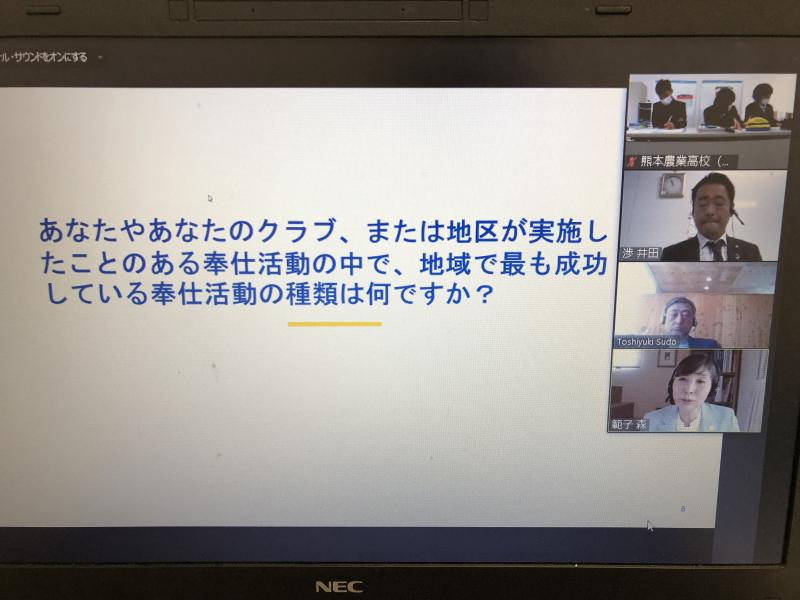 2021年4月23日、本校、全国大会準備室(農業職員室横)において、上記のWeb会議に熊農平成レオクラブの会長・副会長が参加しました。