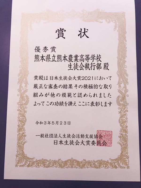 日本生徒会大賞2021で熊農生徒会執行部の活動が全国的に高く評価され、学校の部で優秀賞(全国2位)を受賞しました!