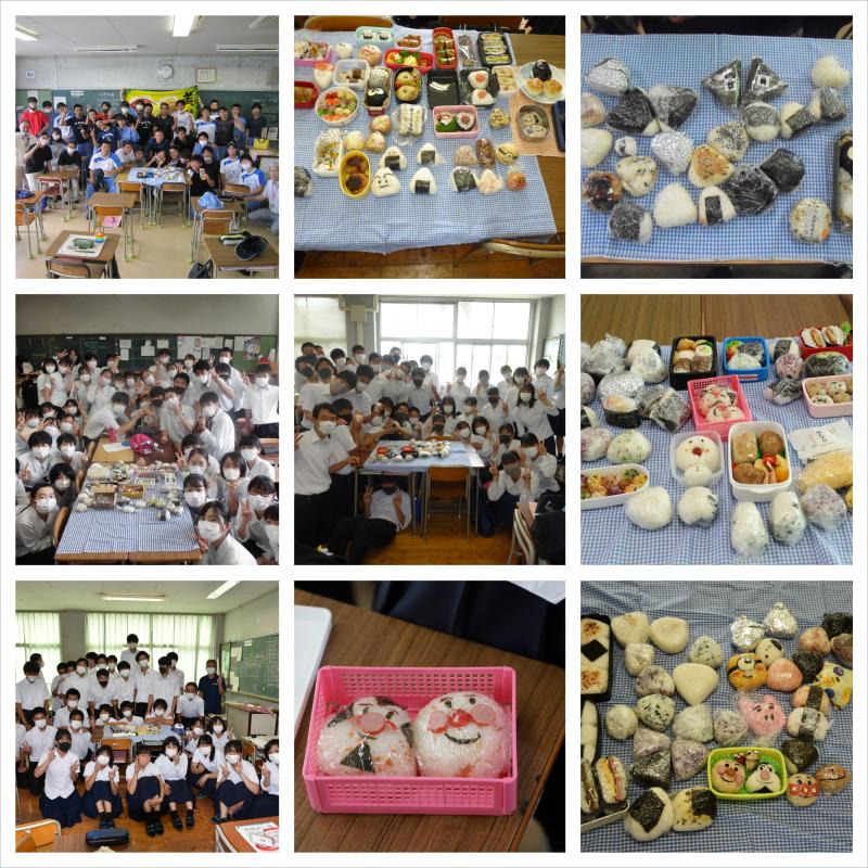 農業高校生として昼食に自分で、おにぎりを握って持ってくることで“食事を作る”“食べる”ことの重要性を実感し、自分や家族の食事を準備することで自立を図り、食べ物のありがたさや日頃食事を作ってくれる家族に感謝する機会となるように、また、クラスメイトでお互いの料理を見るなどしてクラスで交流し、コミュニケーションを深める場となればいいなと、文化委員と担任の先生方を中心に実施しています。