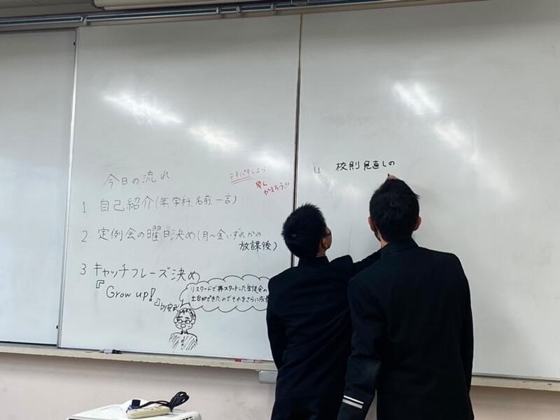 1月12日、第1回定例会議が行われました。自己紹介やキャッチフレーズ決め、ルールメイキングプロジェクト(校則の見直し)について話し合って今後の活動などを確認しました!