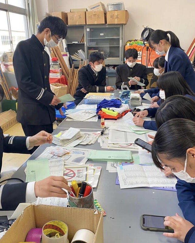 定例会後は、校則と就職活動関連の企業向けアンケートの封筒詰めを行いました。今年度先輩方が内定をもらった企業の中から54社分行いました。