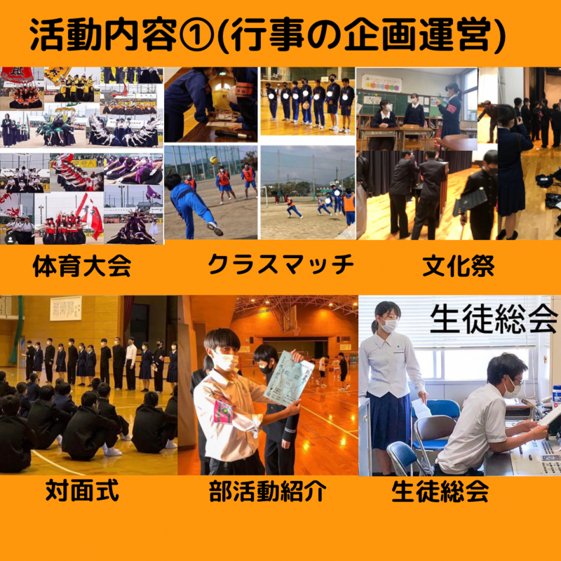 令和3年度生徒会執行部は、RE STARTというキャッチフレーズを掲げ、コロナ禍に負けずに、生徒会関係の学校行事(体育大会、南園祭、クラスマッチ、生徒総会など)を企画して開催まで実現し、当日運営に尽力しました。