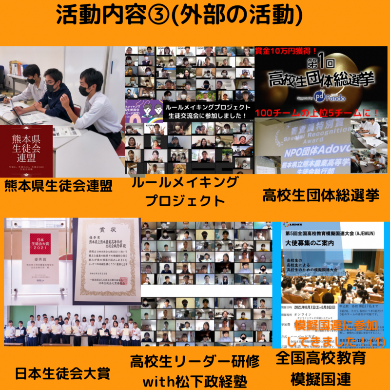 通常の学校の生徒会が行なってないような様々な活動を行い、生徒会活動が活性化し、学校全体を盛り上げ、賞も受賞することが出来ました。