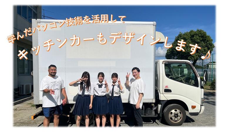 課題研究という授業で、キッチンカーとコラボして商品開発を行っています。商品開発、チラシ、キッチンカーデザインなど生徒たちで考え販売しますお楽しみに