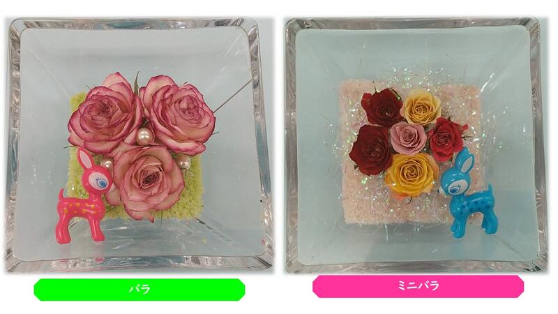 いろんな花のボトルフラワーができていますので、母の日のプレゼント、大切な人へのプレゼントにいかがですか。