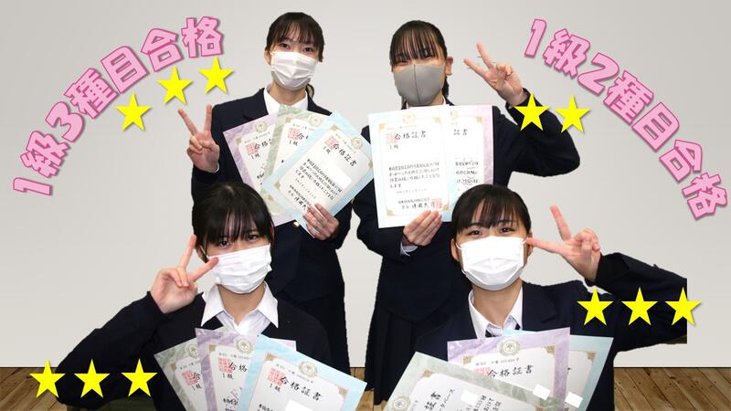 現在農業経済科1年生は、12月までの検定で、すでに1級3種目3名、1級2種目1名、1級1種目1名合格しています