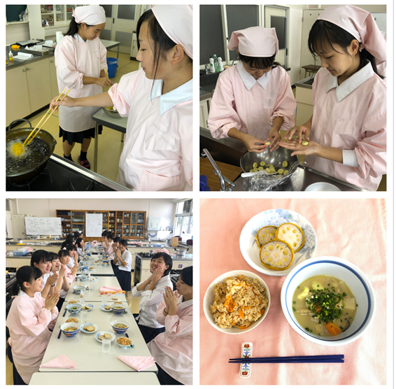 生活科3年生がフードデザインの授業で、郷土料理「お姫さんだんご汁、切り干し大根ご飯、からしれんこん」に挑戦しました。「家でからしれんこんが出るときもあるけど、食べるのは初めて~」という生徒がほとんど。お味は…「辛くてからくて」とのこと。からしれんこんは、まだまだ大人の味のようです。