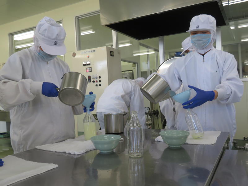 前回の実習でラッキスの製造原理を学んだ食品工業科3年生。今回の製造実習では、販売用の製品づくりに取り組みました。