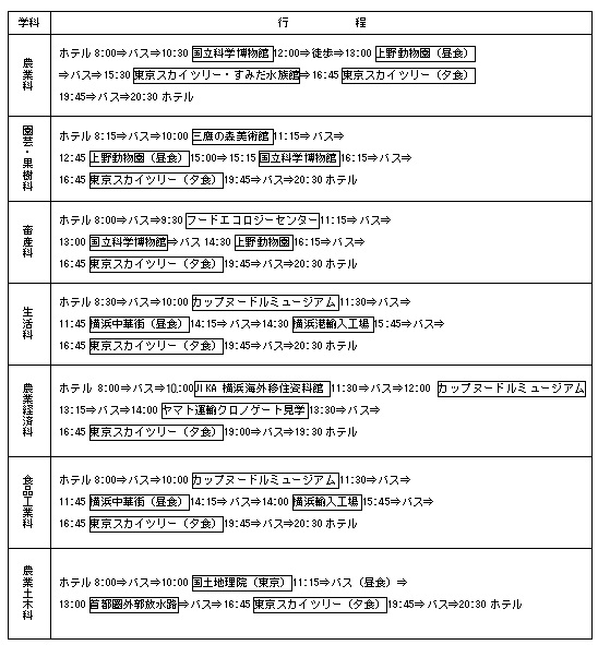 生活科、農業経済科、食品工業科は都心の大渋滞に巻き込まれてしまい、スケジュール調整が必要となってしまいました。