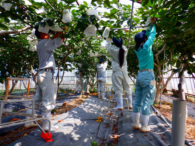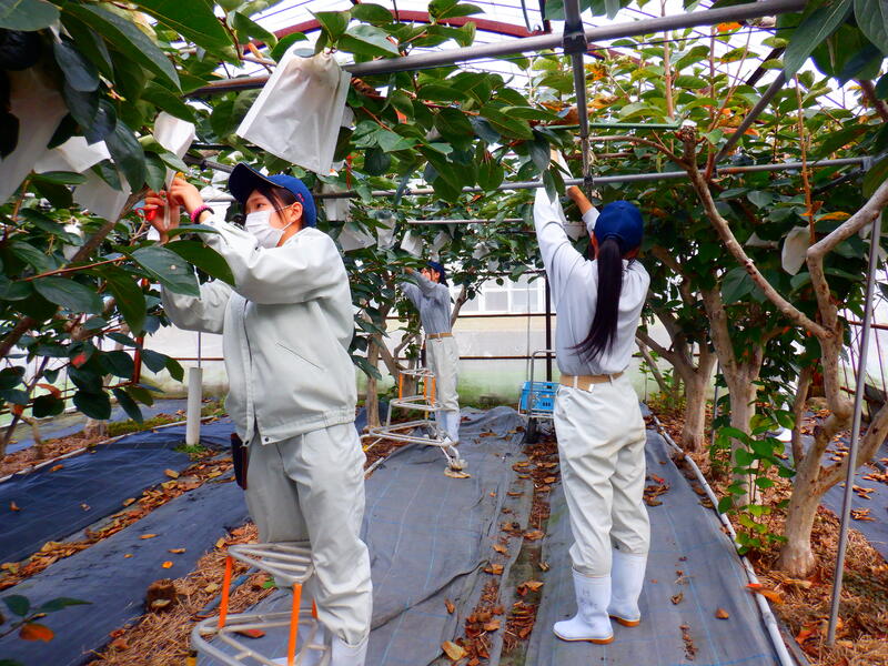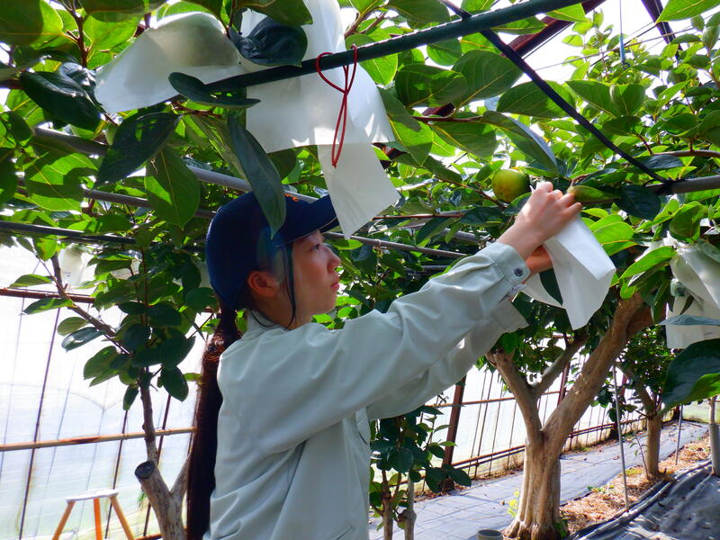 【園芸・果樹科 果樹専攻】カキの袋かけ