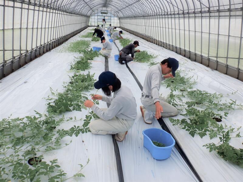 ハウスの中は40℃を超える猛暑の中、こまめに休憩を取りながら1株1株慎重に植え付けを行いました。