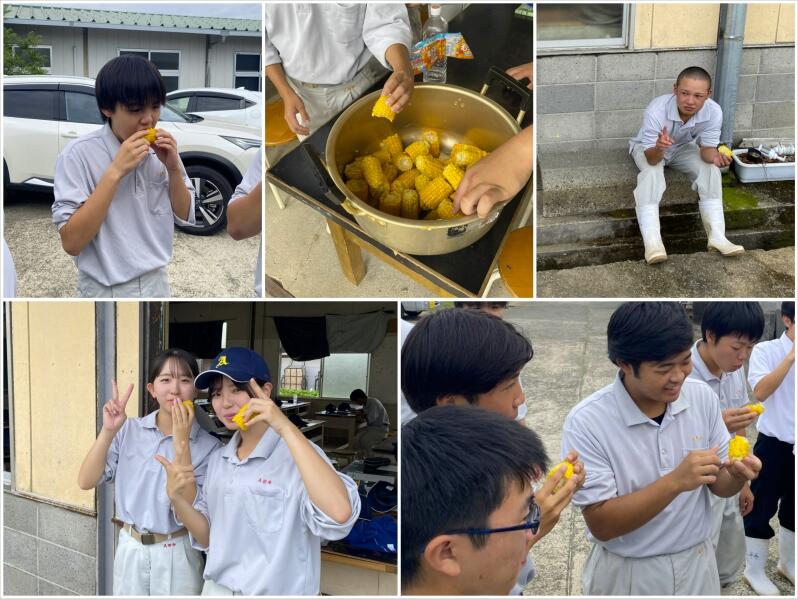 10月17日(木)、農業科2年生でトウモロコシの実習を行いました!この日、種まきから収穫まで約90日をかけ丁寧に栽培してきたトウモロコシ300本を収穫しました!栽培して収穫・販売するだけでは何かが足りない!自分たちで育てた作物はやっぱり食べてみなくては!ということで授業の最後に全員で試食を行いました!「甘い!」「美味い!」という声とともに生徒達が笑顔になる瞬間こそ農業教育の醍醐味なのかもしれませんね(^_^)!