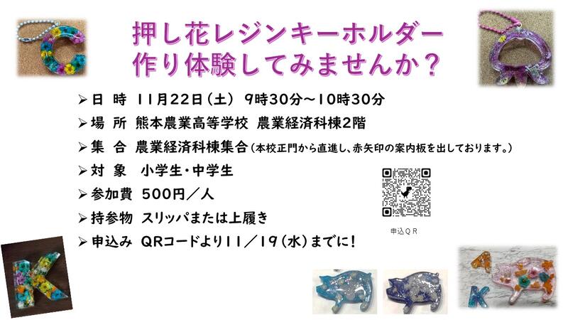 【農業経済科】押し花レジンキーホルダー作り体験in川尻小学校