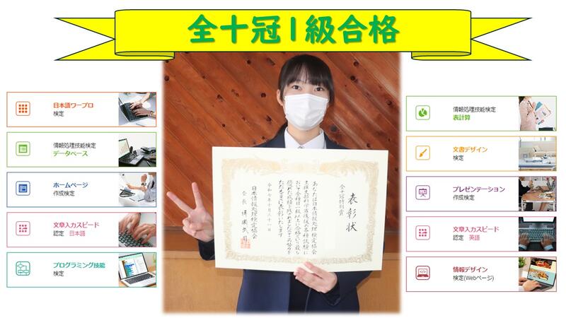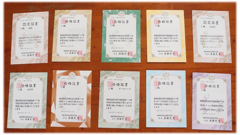 日本情報処理検定協会の全10種類の検定種目において、1級をすべて合格し、全十冠特別賞を受賞しましたお祝い