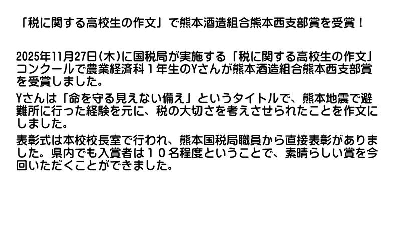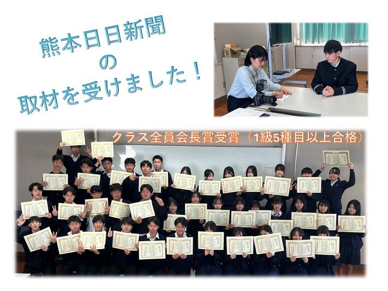農業経済科3年が日本情報処理検定協会の会長賞(1級5種目以上合格)をクラス全員が受賞したことを取材して頂きました期待・ワクワクキラキラ会長賞受賞クラス全員受賞は今年で4回目ですお祝い今年は2種目検定が増えたので、早く会長賞をクラスみんなで受賞することができましたキラキラ そして、1級8種目合格を目標に卒業まで頑張りますニヒヒ晴れ