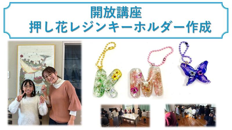 農業経済科では押し花レジンキーホルダー作成を開放講座で実施しました