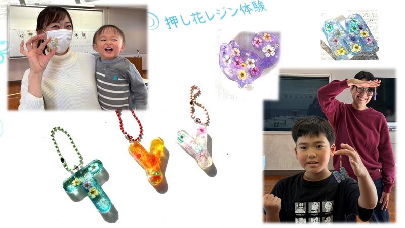 課題研究の授業で取り組んでいる押し花を使ったレジン雑貨を小学生に体験してもらい、お花の美しさを感じて頂きました小学生の皆さんはとても楽しそうに作成し、出来上がったキーホルダーを嬉しそうにお家に持って帰りました