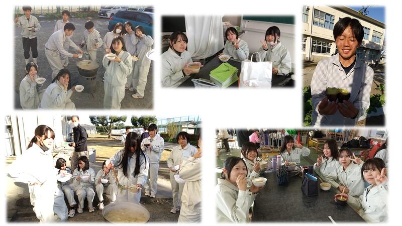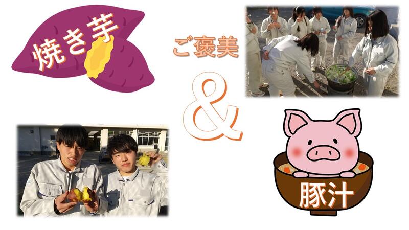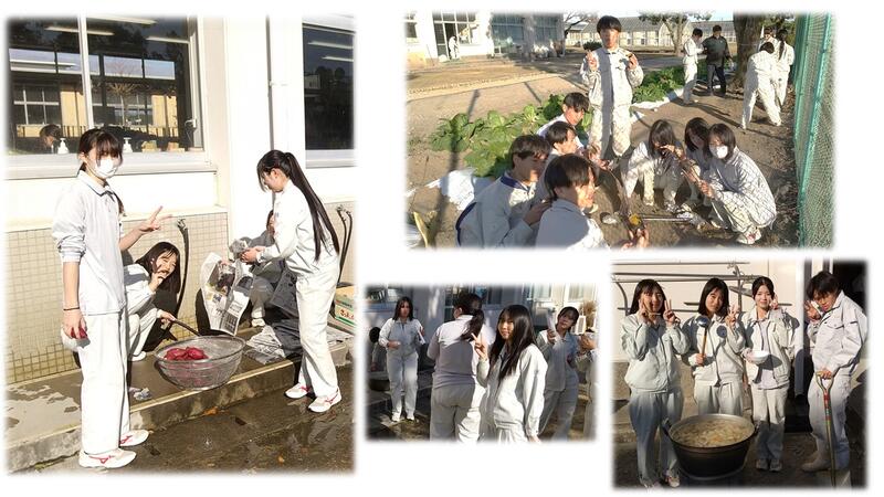 毎日練習を頑張ったご褒美に、生徒からしたいと言う声が上がった、「焼き芋&豚汁」をみんなで楽しみました