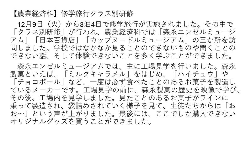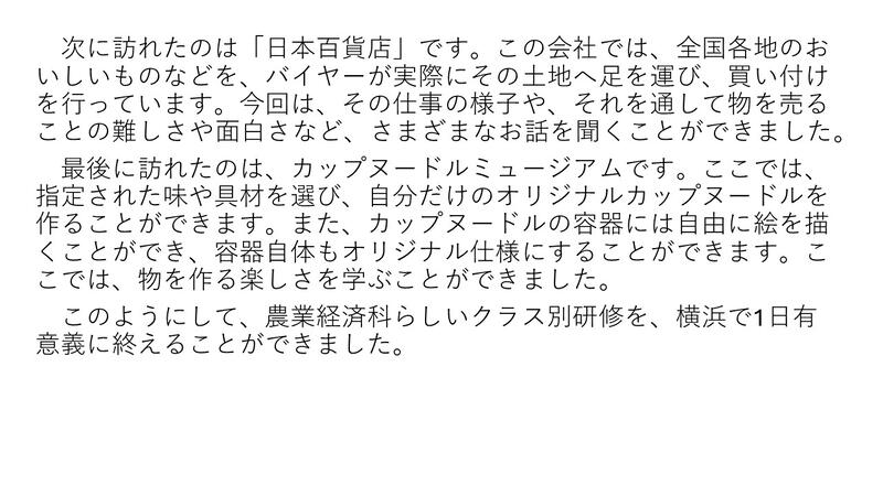 【農業経済科1年】 修学旅行クラス別研修