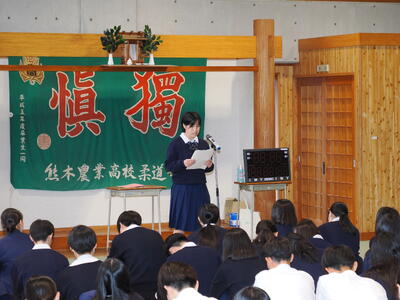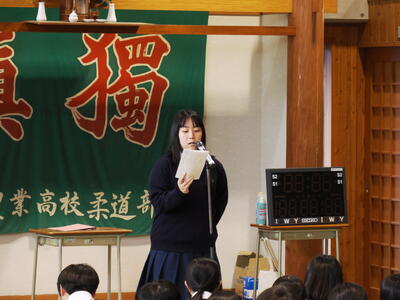 各学年3名、計9名の生徒が日頃の学習に基づく農業や食、環境に関する考えや意見を発表しました。