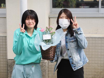 本日、お越しいただいた保護者様には、生徒から直接カーネーションをお渡ししました。