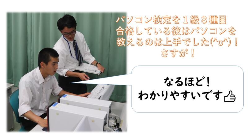 彼女は入学当初からコツコツ、パソコンの練習に一生懸命取り組みました期待・ワクワク