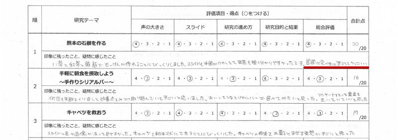 生徒の記録用紙①