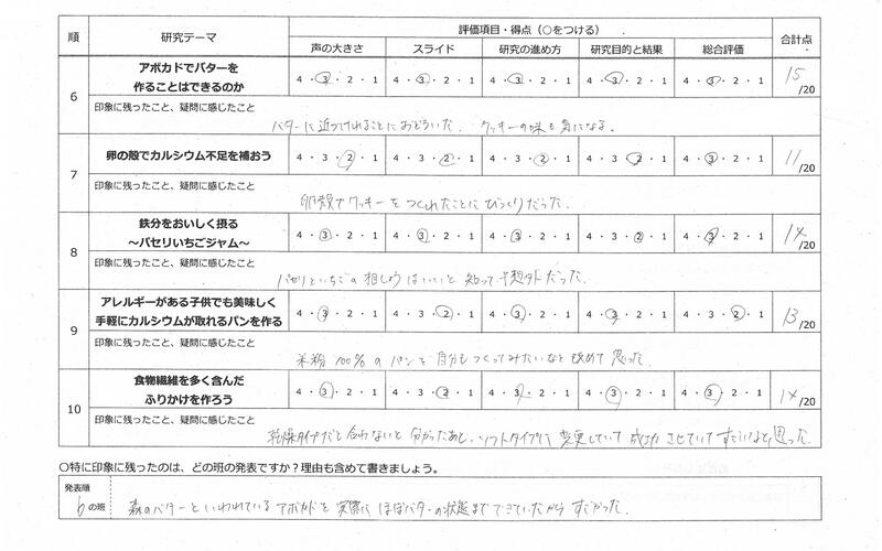 生徒の記録用紙④