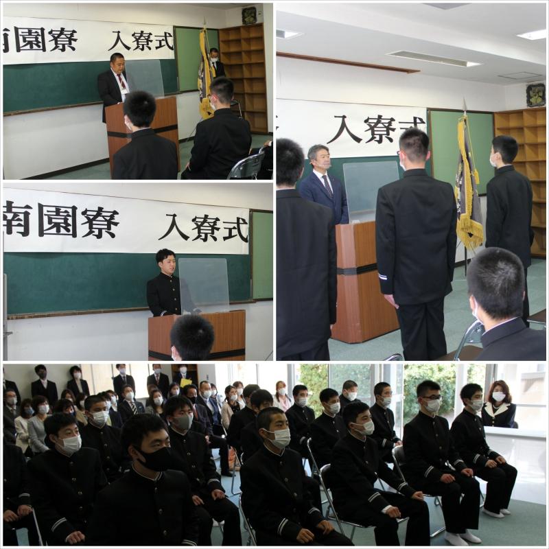 本日の入学式後、南園寮にて令和2年度入寮式が行われました。新型コロナウイルスの影響で式は縮小されましたが、新入寮生たちは堂々とした姿勢で式に臨んでくれました。寮生たちは明日からしばらく自宅待機となりますが、開寮後は2、3年生とともに充実した寮生活をおくってもらいたいものです(^-^)