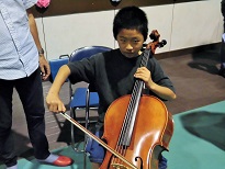 盲学校で行われたマンドリン協会の演奏会に参加してきました。知っている曲の演奏もあり、歌詞カードを目で追いながら音色を感じていました。最後に楽器の体験があり、マンドリンをはじめ、ギター、チェロ、コントラバスなど様々な楽器の弾き方を教えて頂き、みんな興味津々で弾いていました。