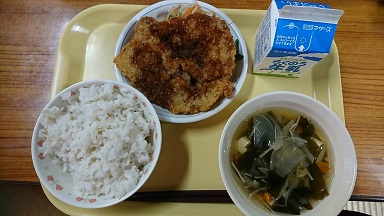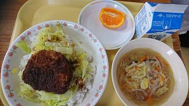 「ソースカツ丼、牛乳、春雨汁、ぽんかん」でした。