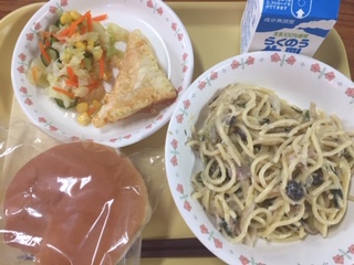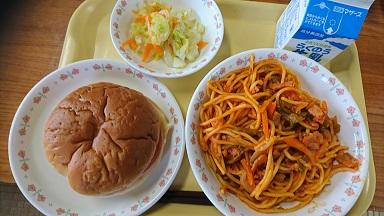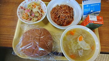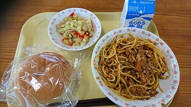 「丸パン、牛乳、ボロネーゼ、イタリアンサラダ」でした。