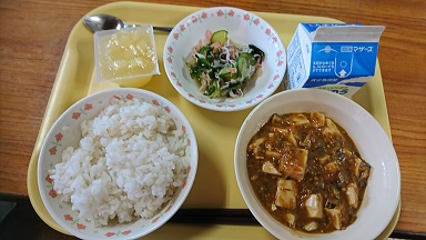 「麦ごはん、牛乳、マーボー豆腐、海藻サラダ」でした。