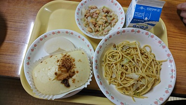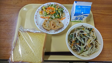 「コッペパン、牛乳、焼きそば、彩り中華サラダ」でした。