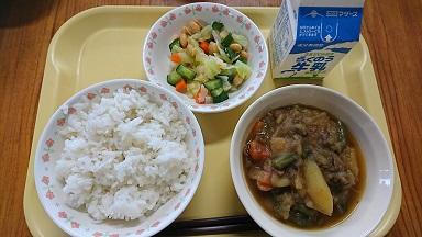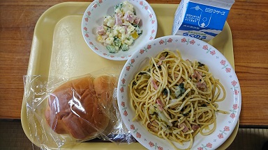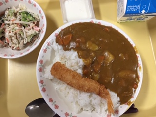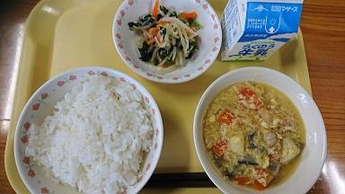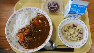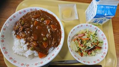 「チキンカレーライス、牛乳、スパゲティサラダ」でした。