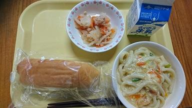 「コッペパン、牛乳、大根とかぶのツナサラダ、たまごとじうどん」でした。
