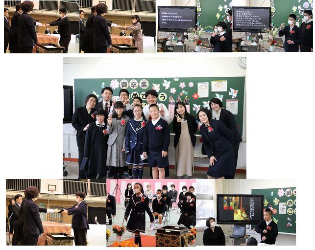 今年は新型コロナウイルス感染防止のため、在校生が不参加という例年とは違う形での実施となりましたが、小学部の卒業生7人は、明るく笑顔で式に参加していました。式辞では、校長先生から卒業生一人一人に向けて、6年間で頑張ったことやそれぞれの得意なことなどの言葉をいただきました。卒業生は自分の良さを再確認でき、自信をもって次のステージへ進むことができたのではないかと思います。最後のホームルームでは、家族への感謝の気持ちやこれから頑張ることなどを思い思いに述べていました。感謝の気持ちを忘れずに、未来に向かって羽ばたいていってほしいですね。