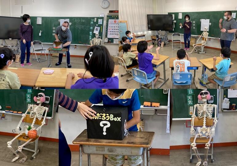 ALTのルナ先生がお友達のスケルトン(がいこつ)君を連れて来られ、おっかなびっくりで楽しい授業を展開されました。